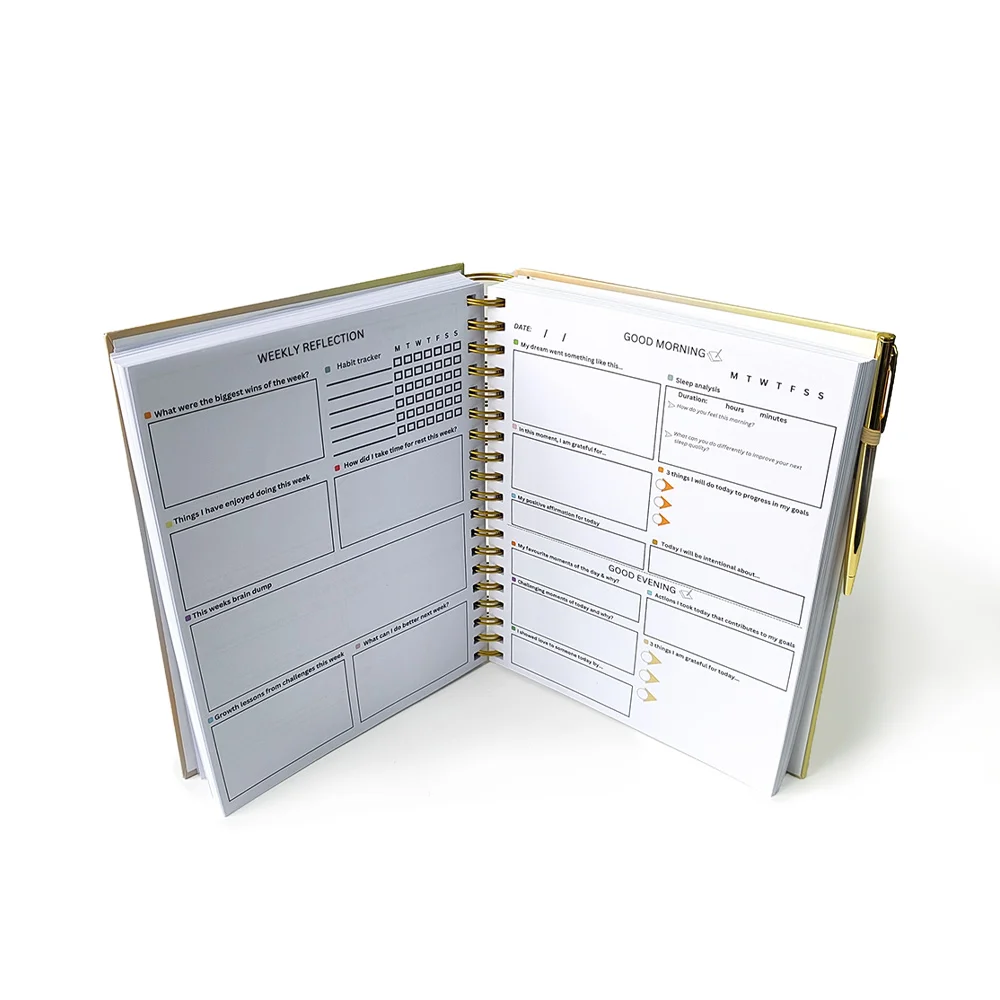 The 2025 Planner and Journal Spiral Planner Luxury Notebook and Pen Set Customized Planner Gift Box Printing represents a sophisticated convergence of functional organization tools and premium presentation packaging, specifically engineered to meet the discerning requirements of international business markets seeking comprehensive stationery solutions with exceptional customization capabilities. This carefully curated planning system transcends conventional notebook offerings by integrating multiple organizational components within a cohesively designed luxury presentation framework, making it particularly suitable for corporate gifting programs, promotional campaigns, and executive-level business accessories across diverse industry verticals. The spiral-bound planner configuration ensures optimal user accessibility and durability while maintaining professional aesthetic standards expected in contemporary business environments, with the accompanying premium writing instrument and custom gift box elevating the overall product positioning from basic stationery to comprehensive branded business solutions. Manufacturing approaches for this integrated planning system emphasize precision engineering and quality material selection, incorporating high-grade paper stocks that provide smooth writing surfaces and resist ink bleeding while ensuring long-term durability under frequent use conditions. The spiral binding mechanism utilizes robust metal components designed to withstand repeated opening and closing cycles without compromising structural integrity, while the cover materials are selected for their ability to accept various customization techniques including embossing, foil stamping, and digital printing applications. Surface treatment options encompass multiple finishing techniques that enhance both tactile experience and visual appeal, ranging from matte laminations that provide sophisticated understated elegance to spot UV coatings that create selective glossy accents highlighting specific design elements or branding components. The accompanying pen component is engineered to complement the overall aesthetic while providing reliable writing performance, with customization possibilities extending to barrel printing, engraving, and color coordination to match corporate branding requirements or specific promotional themes. Customization capabilities represent a cornerstone feature of this comprehensive planning solution, enabling businesses to incorporate their unique branding elements, messaging, and design preferences across all system components including the planner interior layouts, cover designs, pen personalization, and gift box presentation graphics. Advanced printing technologies support full-color reproduction, ensuring accurate brand color matching and high-resolution graphic reproduction that maintains professional standards across large production quantities. The gift box component serves dual purposes as both protective packaging during shipping and handling as well as an impressive presentation vehicle that reinforces brand positioning and creates memorable unboxing experiences for recipients. Application versatility extends across numerous business scenarios including executive gifts, employee recognition programs, client appreciation initiatives, trade show giveaways, and seasonal promotional campaigns, with the comprehensive nature of the set providing multiple touchpoints for brand engagement and practical utility that ensures extended brand exposure through daily use patterns. The planning system accommodates various organizational methodologies and user preferences through thoughtful interior layout design that incorporates monthly overviews, weekly spreads, daily scheduling sections, note-taking areas, and goal-tracking components, making it suitable for diverse professional roles and personal organization styles. Quality consistency philosophy underlying the manufacturing process emphasizes standardized production protocols and rigorous quality control measures that ensure uniform product characteristics across production batches, critical for maintaining brand reputation and meeting expectations when products are distributed across multiple markets or recipient groups. Export-oriented handling considerations include protective packaging specifications designed to prevent damage during international shipping while optimizing dimensional efficiency to minimize logistics costs, with packaging materials selected for their ability to maintain product integrity under varying environmental conditions encountered during global distribution networks. The collaborative customization process accommodates both OEM and ODM cooperation models, enabling businesses to work directly with manufacturing partners to develop unique variations that align with specific market requirements, brand guidelines, or functional preferences while maintaining the core quality and design standards that define the product category. Packaging compatibility extends to various distribution methods including direct-to-consumer shipping, retail display configurations, and bulk corporate distribution scenarios, with modular packaging options that can accommodate different quantity requirements while maintaining consistent brand presentation standards. Manufacturing experience in producing premium stationery products and custom packaging solutions ensures comprehensive understanding of international quality expectations and the technical requirements necessary to deliver products that meet professional standards across diverse global markets. The integrated approach to product development considers long-term supplier cooperation expectations, with manufacturing processes designed to support ongoing customization requirements, seasonal variations, and evolving brand needs while maintaining cost efficiency and quality consistency that enables sustainable business relationships between suppliers and internatio