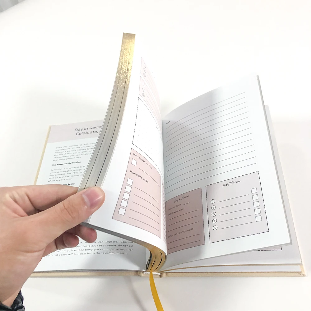 Our Printing Factory Custom Book Printing Services Linen Notebook Hardcover Books With Painted Sprayed Edge represents a sophisticated fusion of traditional bookbinding craftsmanship and contemporary design innovation, specifically engineered to meet the diverse requirements of international B2B clients seeking premium publishing solutions across global markets. This comprehensive service offering positions itself as an essential partner for distributors, publishers, corporate buyers, and sourcing professionals who demand exceptional quality standards while maintaining competitive positioning in their respective market segments. The manufacturing approach integrates advanced printing technologies with meticulous attention to material selection, ensuring that each produced volume meets the stringent expectations of professional publishing environments while accommodating the varied aesthetic preferences of end-users across different cultural and commercial contexts. The linen covering material provides an exceptionally durable and visually appealing exterior surface that demonstrates remarkable resistance to everyday wear while maintaining its distinctive textural characteristics throughout extended usage periods, making it particularly suitable for premium gift items, corporate branding applications, and high-end retail environments where presentation quality directly influences purchasing decisions. The hardcover construction methodology employs reinforced binding techniques that ensure structural integrity under various handling conditions, incorporating professional-grade adhesives and reinforcement materials that maintain book spine alignment and page security even during frequent opening and closing cycles typical of intensive business usage scenarios.